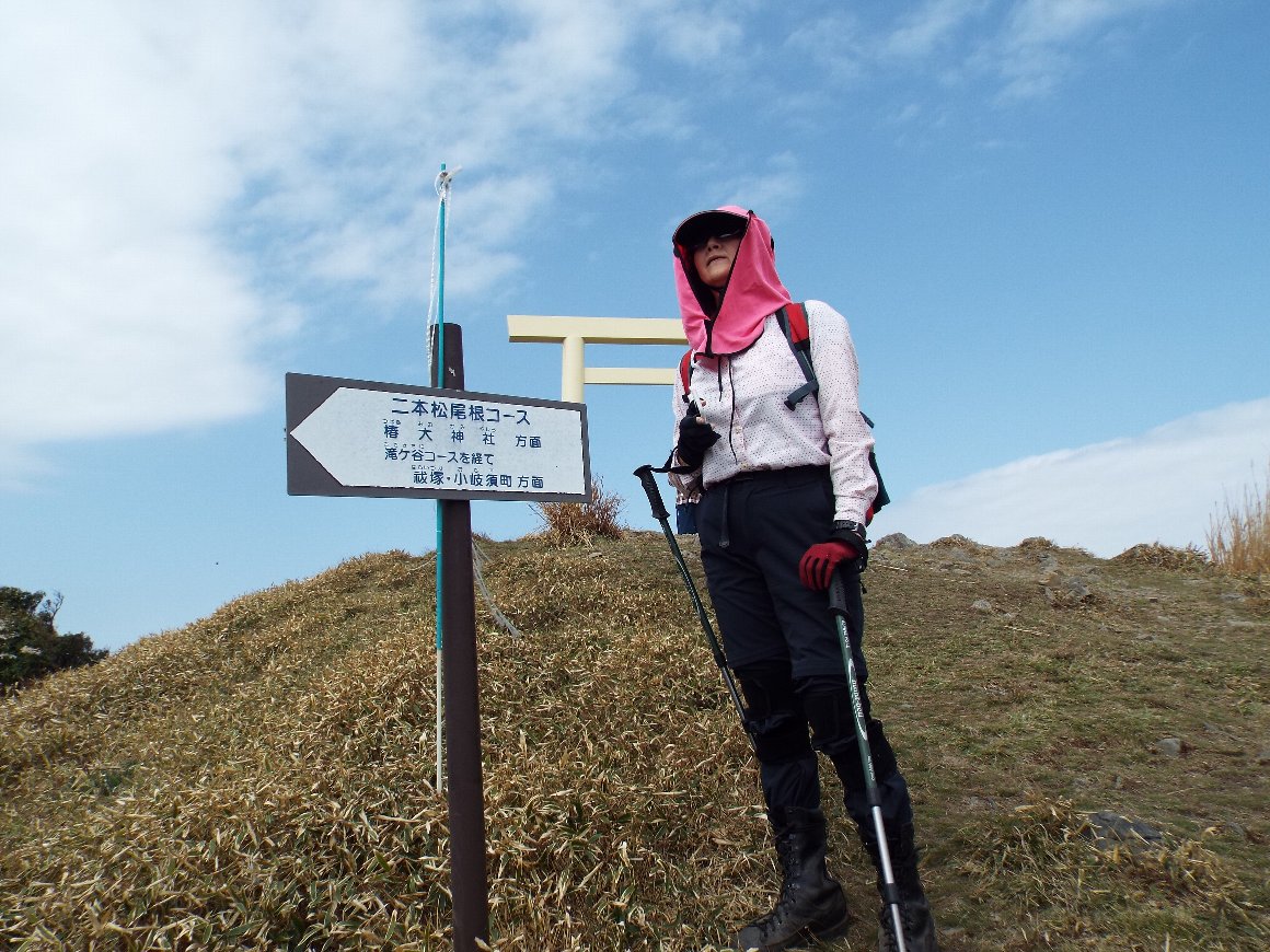 頂上は広々とし、 大きな鳥居がある。 鳥居の下には奥宮 椿大神社の石板がある。
