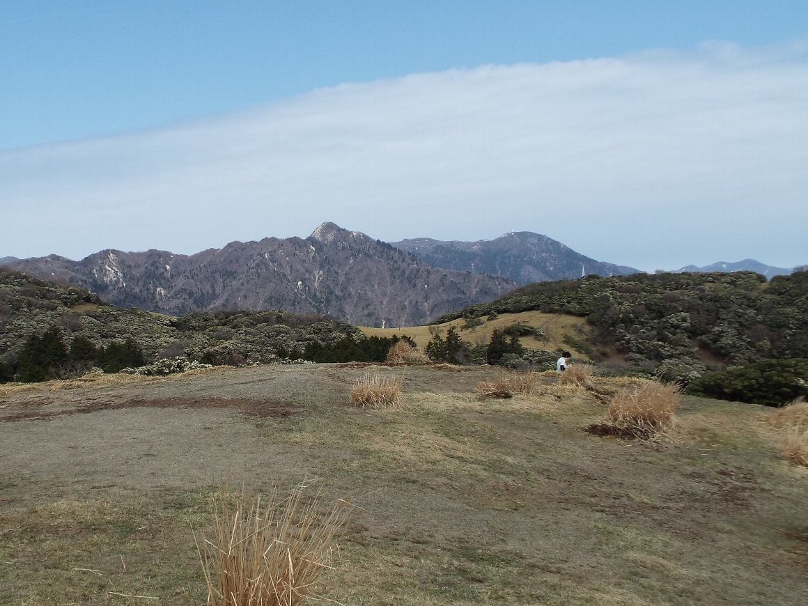鎌ケ岳 と 御在所岳 遠くの山並みは 養老山系 |