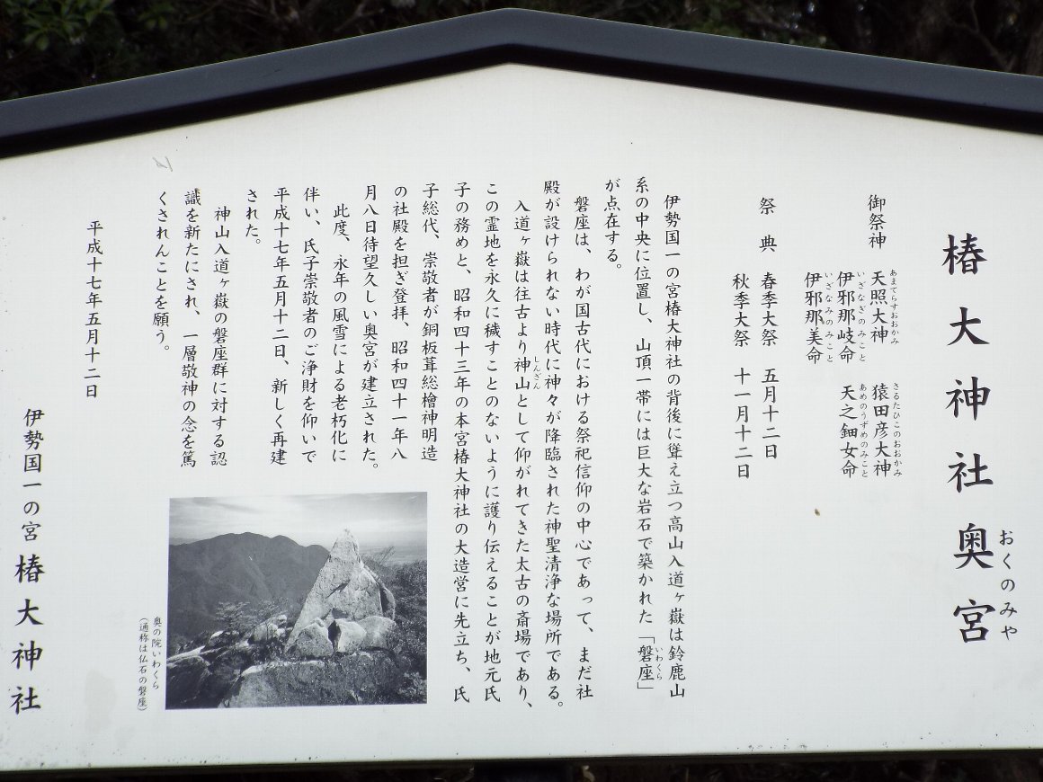 椿大神社 奥の院 でなく 奥宮 とは、 入道ケ岳の山頂
