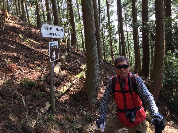 久々の山歩きだからか、膝が痛くなってきて、 ハルかみの 膝サポーターの片側を借りて使用。