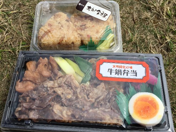 鳥居の近くで、お弁当を食べる。