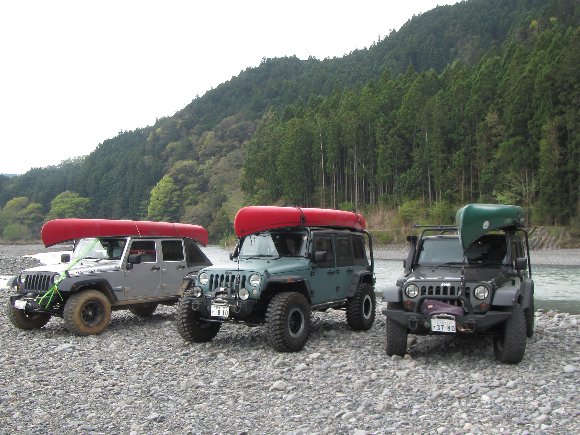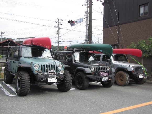 遠鉄ストア 3台並んだ カヌーを積んだJeepラングラー・アンリミ |
