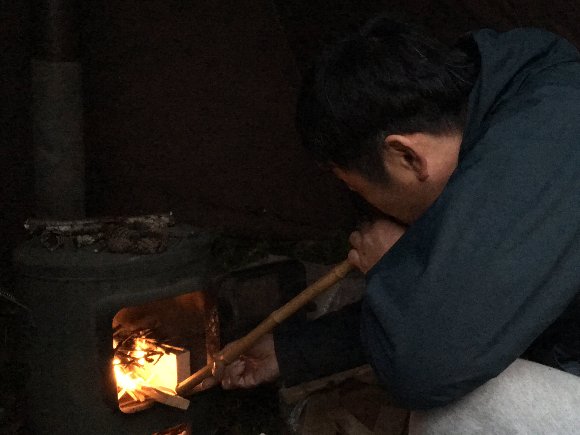暖かい日が続いていたが、 この日はとっても寒く、火が欲しい。