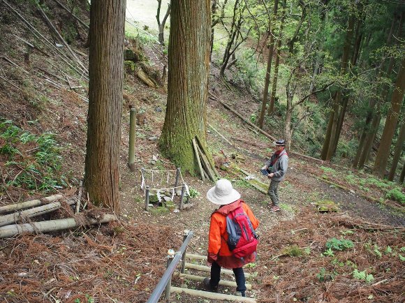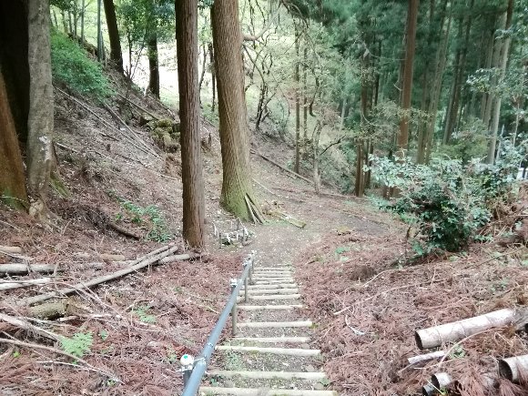 ![]() 吉水神社への参道は、急坂を降りて行き、また登っていくのだ |