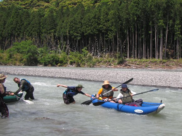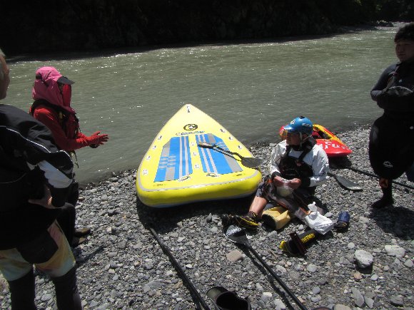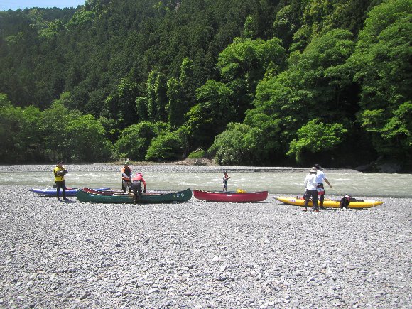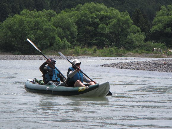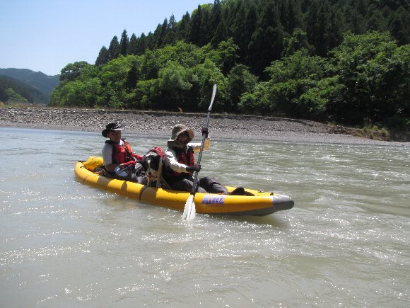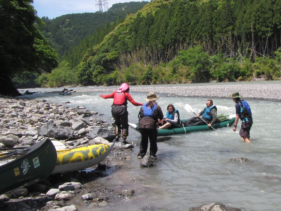 増水で水位がく、流れは速いが初心者には漕ぎやすかった様だ。
