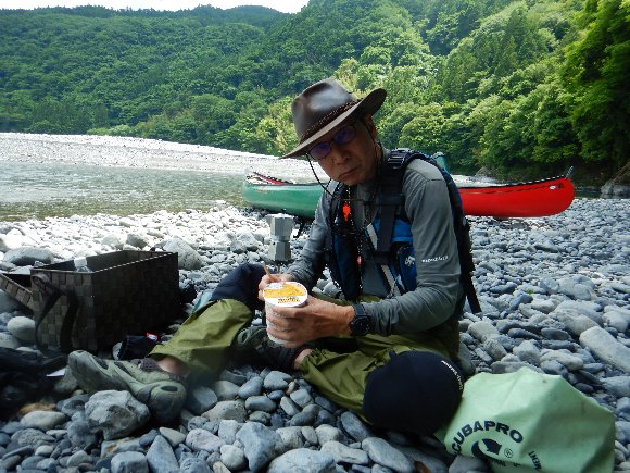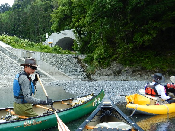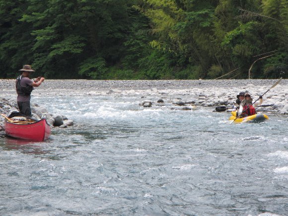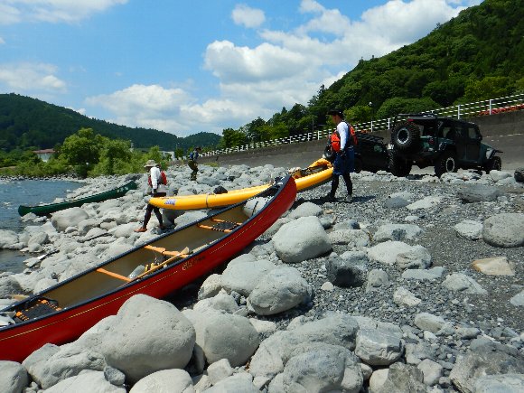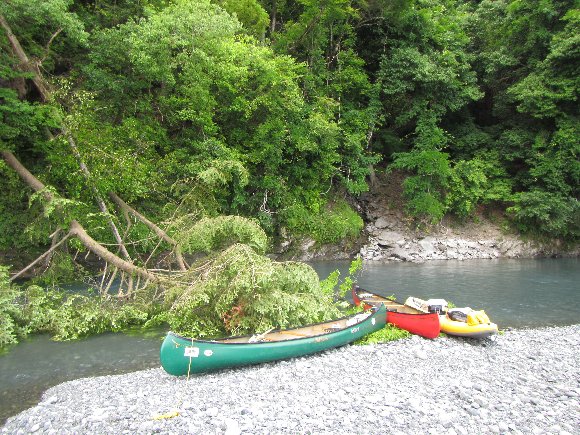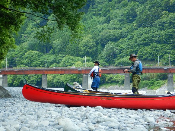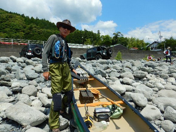 近くの河原に、回送用の車をデポ、 着替えて 千頭の河原へ。