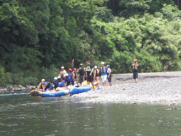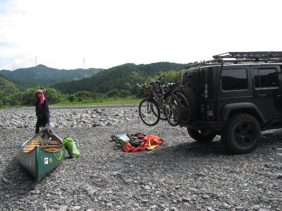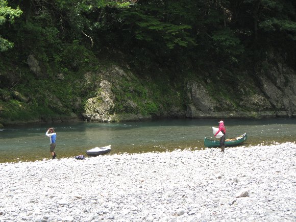 河原で出発準備をしていると、