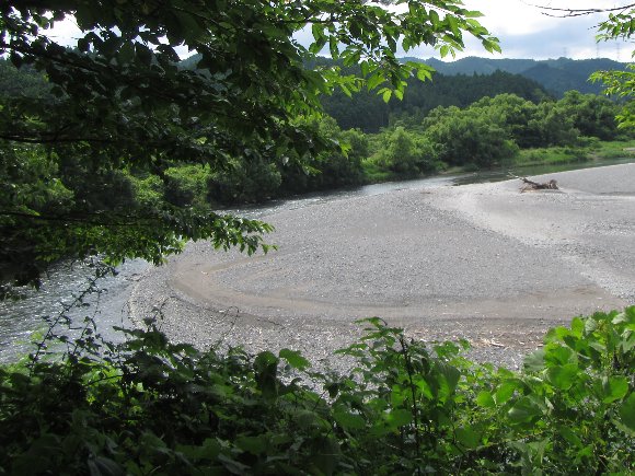 神社前の河原が見えてきた |