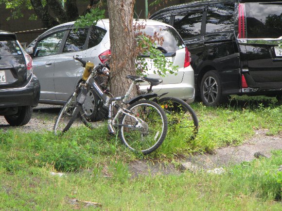 駐車場の樹に自転車をしばる 10:00 |
