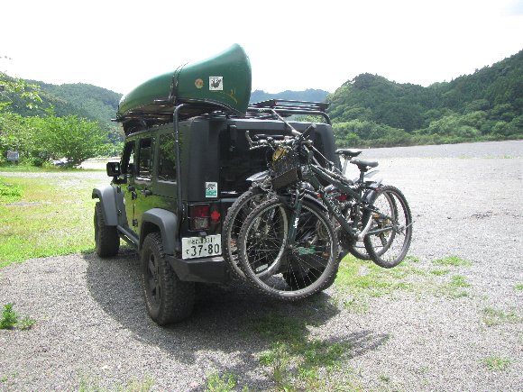 神社前河原から、笹合へ車を置き、 自転車でもどる 往復で50分程度。