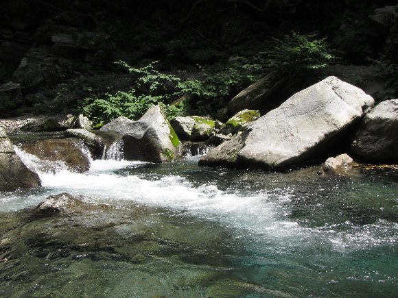 上流部へ進んでいくと、水が透き通ってくる。
