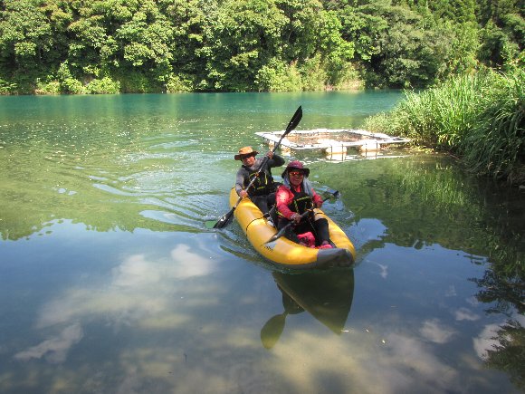 10時50分 上流方面へ漕ぎだす、 イエローとグリーンのリンクス2 2艇 |
