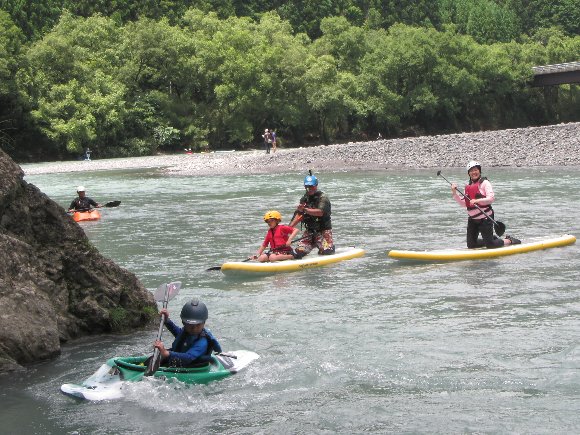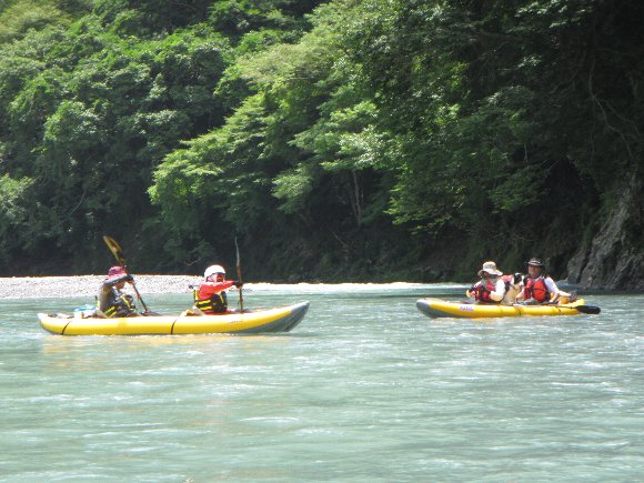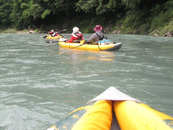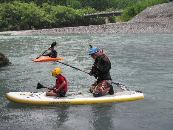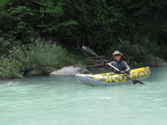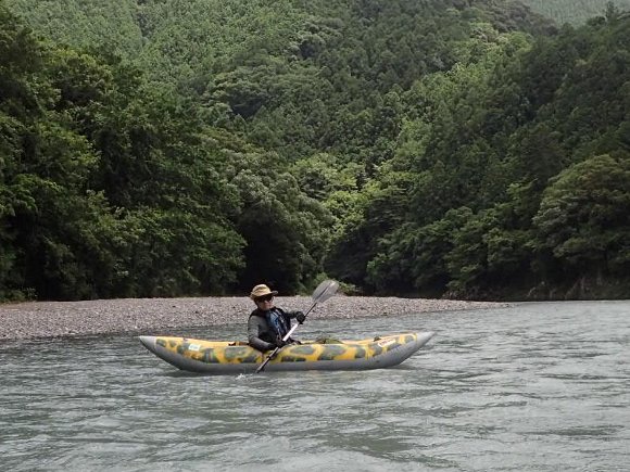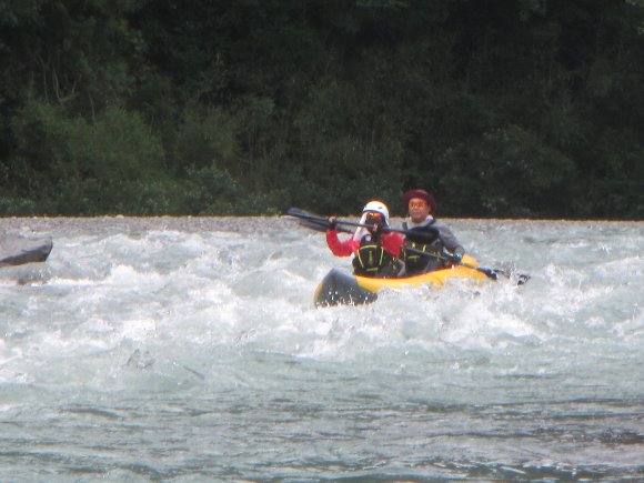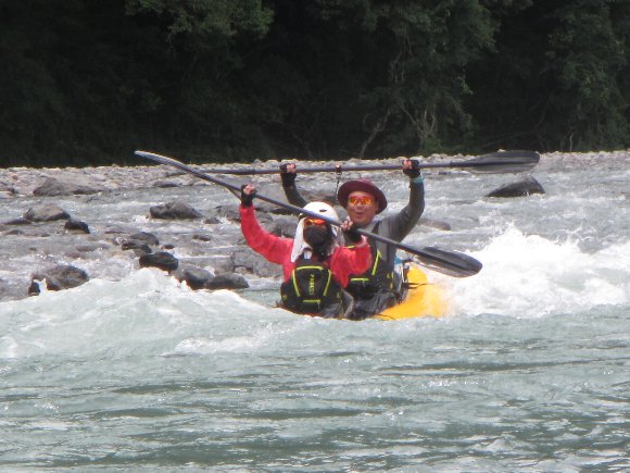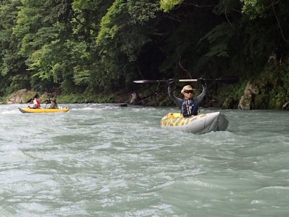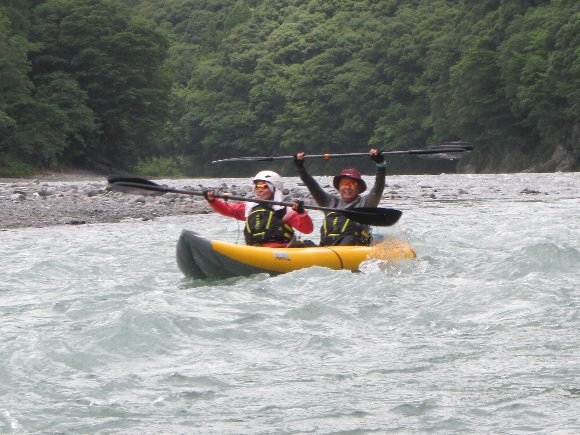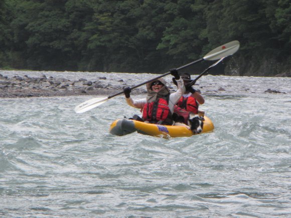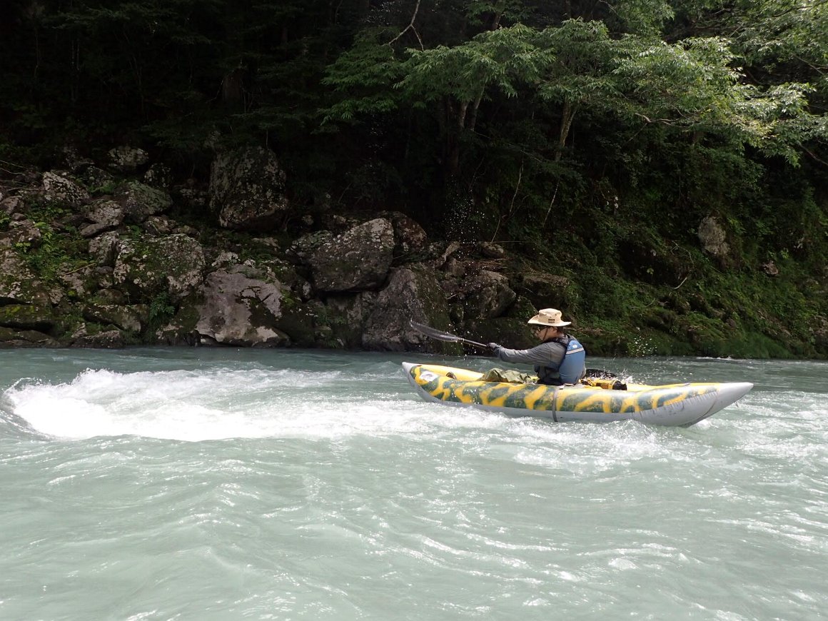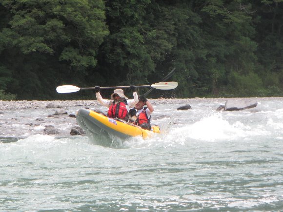その安定性、抜群の回転性は楽しい、 瀬の波へまっすぐに入っていき、大きく艇がウエ〜ブし、水を正面からかぶるのが楽しい!