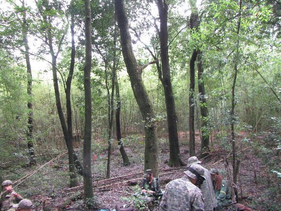 初めてのフィールドは、深い森と、こみいった竹藪で、見通しがきかない、動きづらいが、 なかなか面白い情景である。