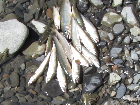 この下流は、天然アユが釣れるので 小ぶりなんだとか、