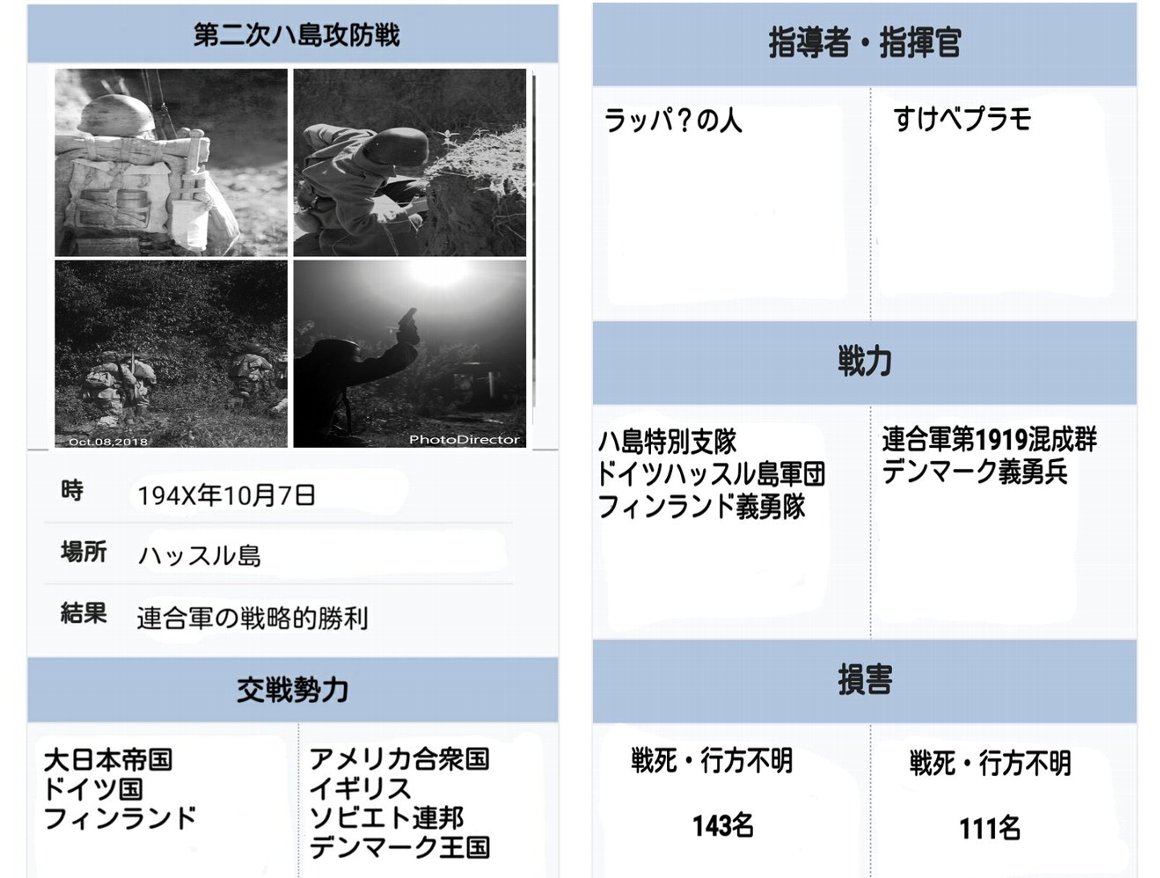 連合軍に占領下にあるハッスル島(以後、ハ島)奪還を任務とした枢軸軍との間に起きた戦い。