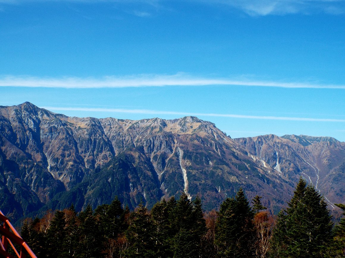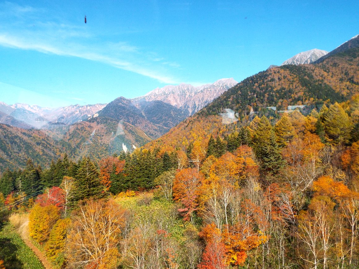 第2ロープウェイからの景色は、西穂高から槍ケ岳 眼下には紅葉