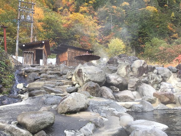 上の 2段の露天風呂が男湯 一番下は混浴となっている。 |