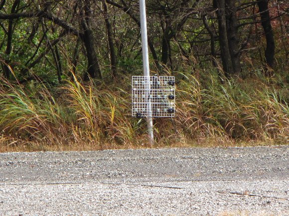 50m先の試射用の的 あたると点灯する。 |