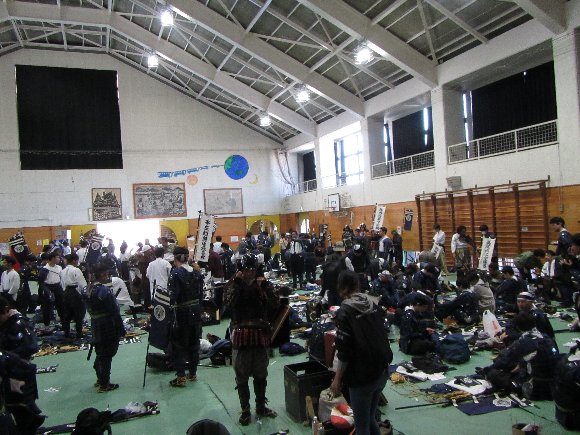 学校の体育館で着替え |