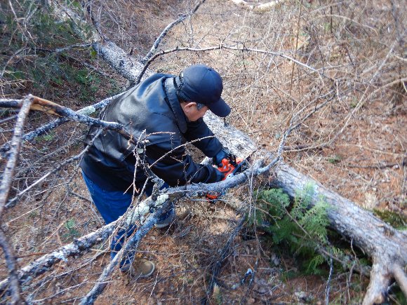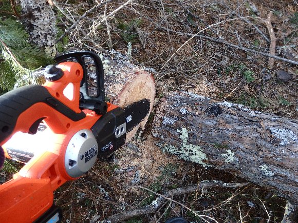 切断 しかし太い樹なので、1本と半分で 電池切れ |