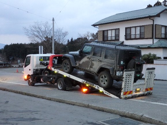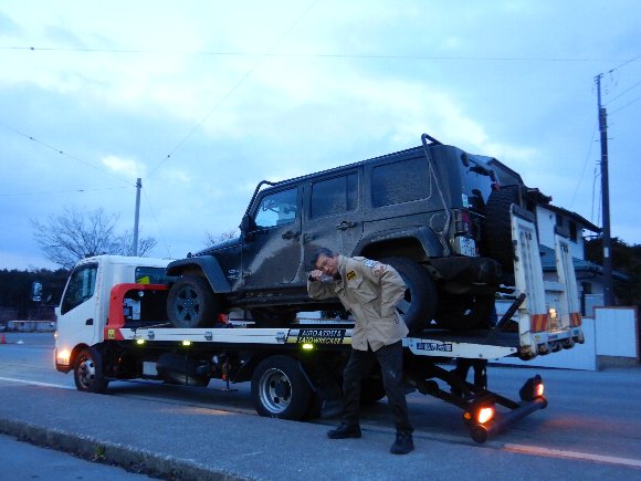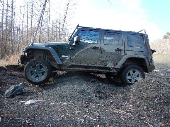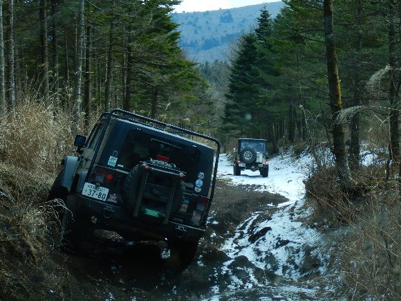 雪がなく 雪どけの泥道 なので 車の色が変わってしまう。 |