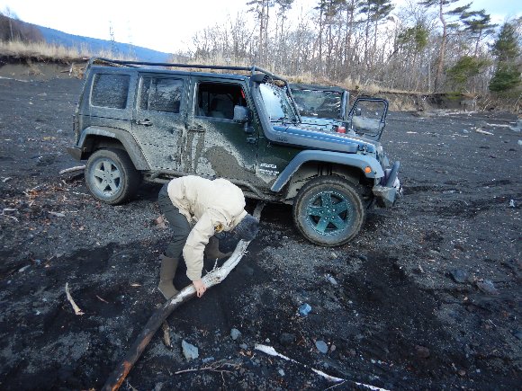 ボスのJeepには、 不思議と、度々樹がひっかかる |