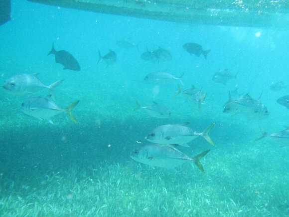 海中を覗くと、けっこう魚がいる |