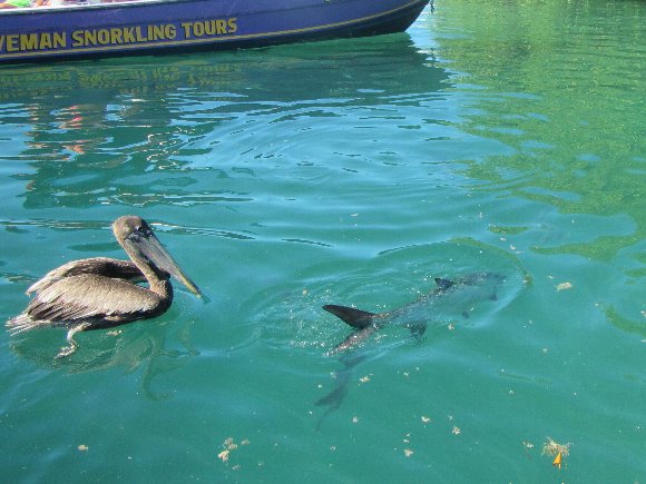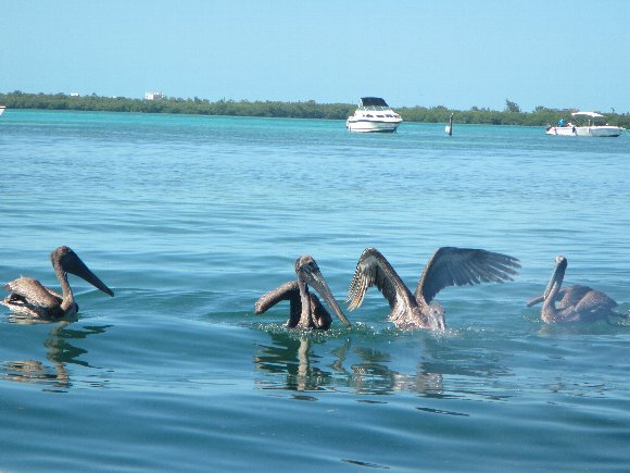 ペリカンと遊ぶ古代魚 |