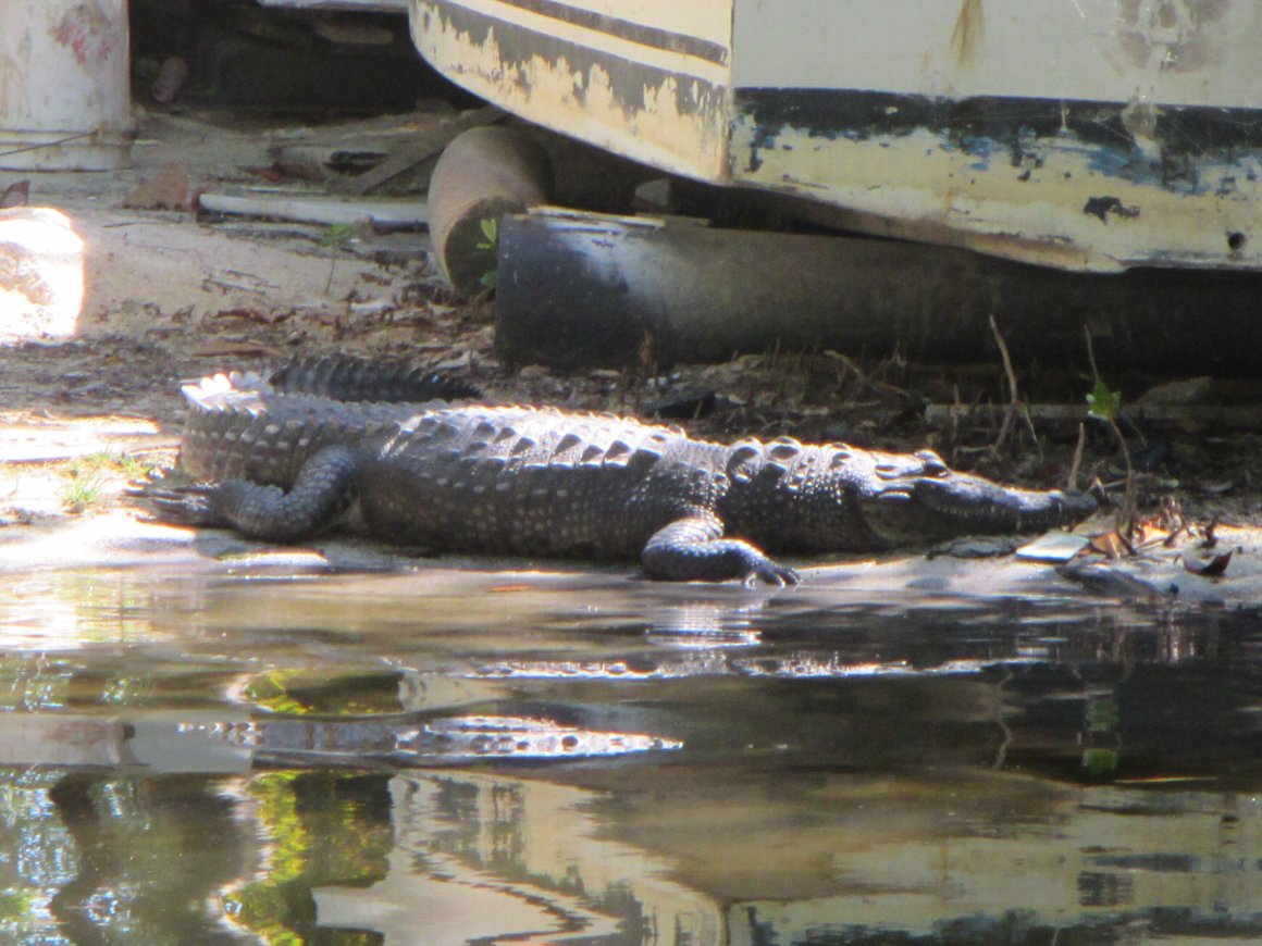 岸辺に こんなものまで・・・・。 アメリカワニ |