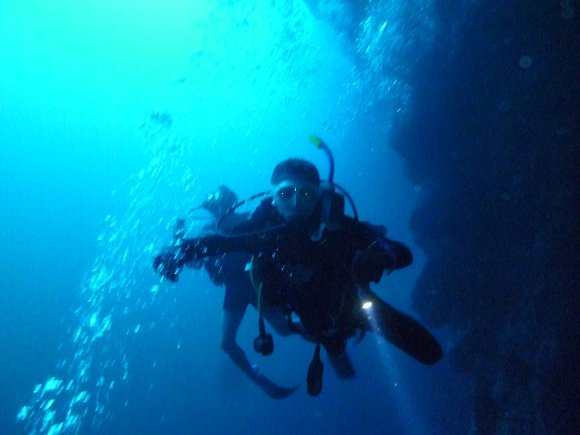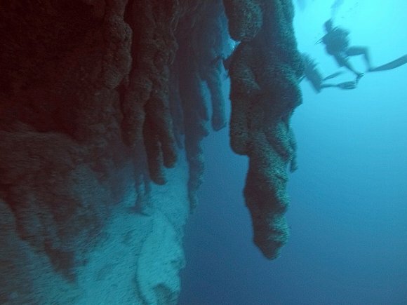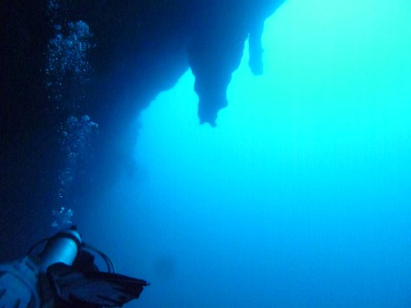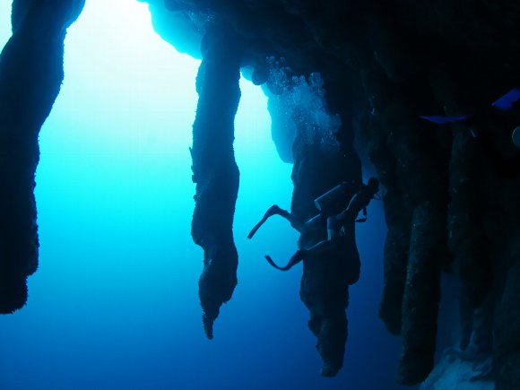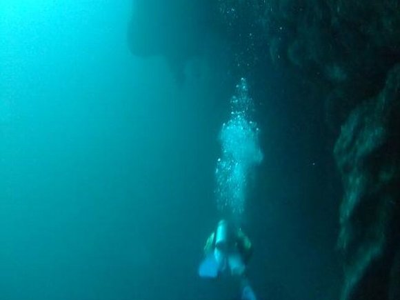 ダイビング組 3名は、ブルーホール深度40mの鍾乳洞へ