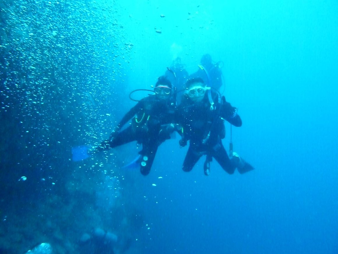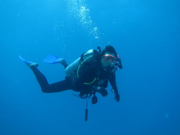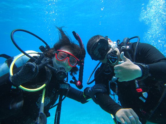 この日は、スノーケリング組とは別れ、ダイビングショップへ