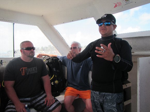 ダイビンボートで、ガイドのブリーフィング 英語なので何言ってるのかわかんない |