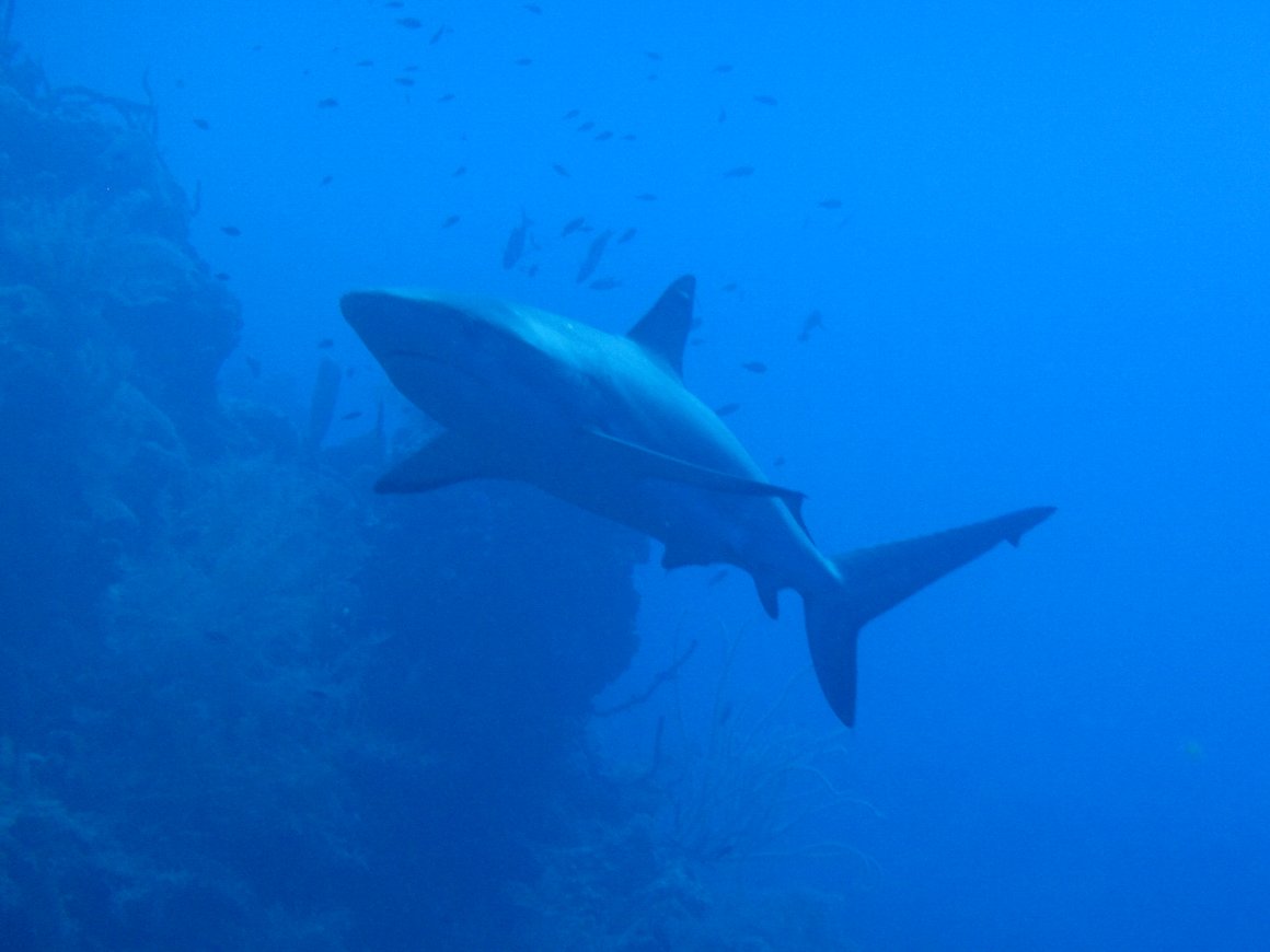 サメが悠然と泳ぐ