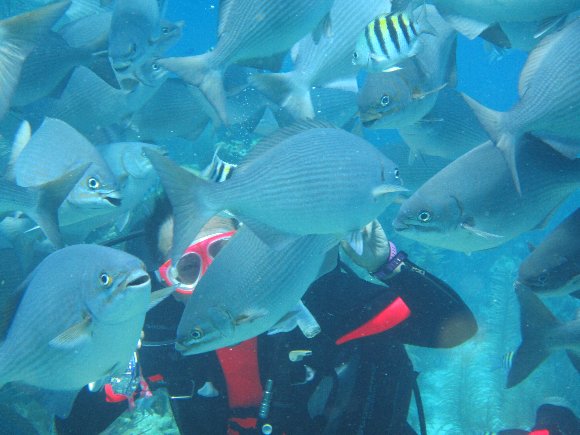 ![]() 魚影が多い |