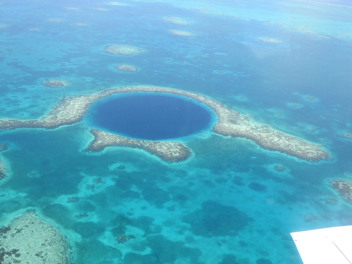 | カリブの真珠 ベリーズ ブルーホール 2019.03.17-18 ブルーホールの直径は 313m 深さは 124m 氷河期に地上で形成され、氷河期の終わりと共に海面上昇と地殻変動で海中に没した |