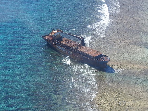 リーフに座礁して朽ちていく船 |