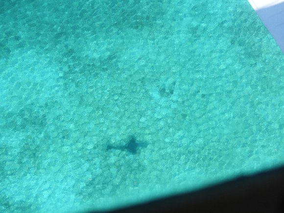 綺麗な海に写る飛行機の影 |