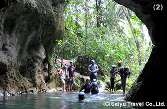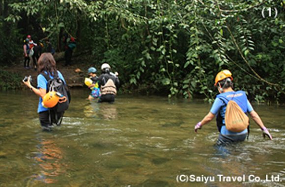この洞窟への道も、一か所渡河地点があった、この日に水位ではシュノーケルが必要ではなかったが、増水時は必要になるのだろう。