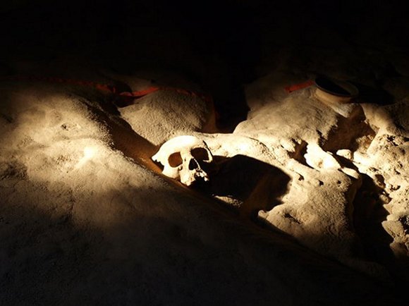 マヤの生贄儀式が行われた洞窟で、1,500点ものマヤの出土品や14体の遺骨がのこっています。