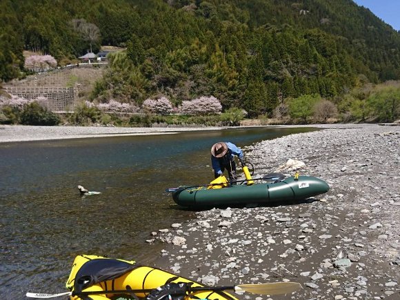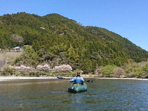 平日休みのYMさんと、桜満開 しかし 最低水位(22cm)の気田川を漕ぐ