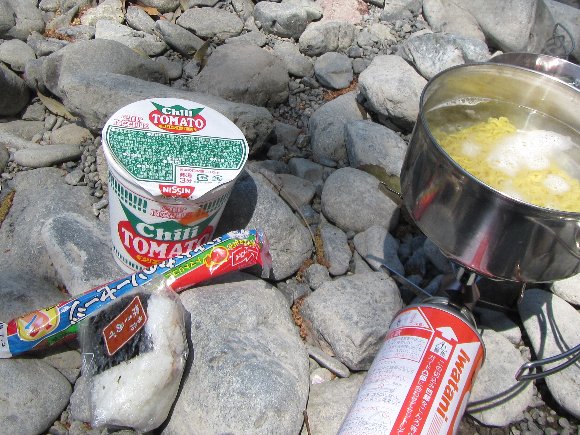 カップヌードル チリトマト と 寿がきや ラーメン(調理中) |