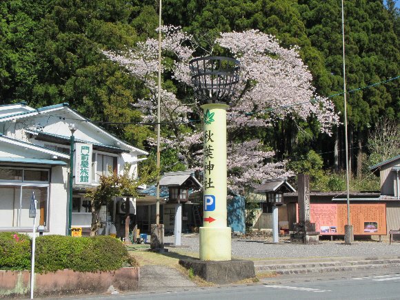 秋葉神社下社前の河原の桜も満開 |