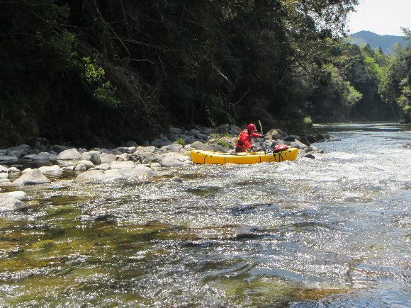 水位が低いので、瀬での隠れ岩を交わしながら漕ぐ |