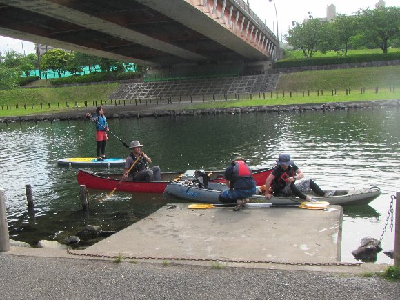 他のSUPや、カヤックも行きかう |
