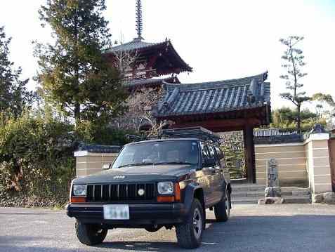 No.9 法輪寺 と MyJeep (ここに駐車したわけではなく、撮影の為です) |