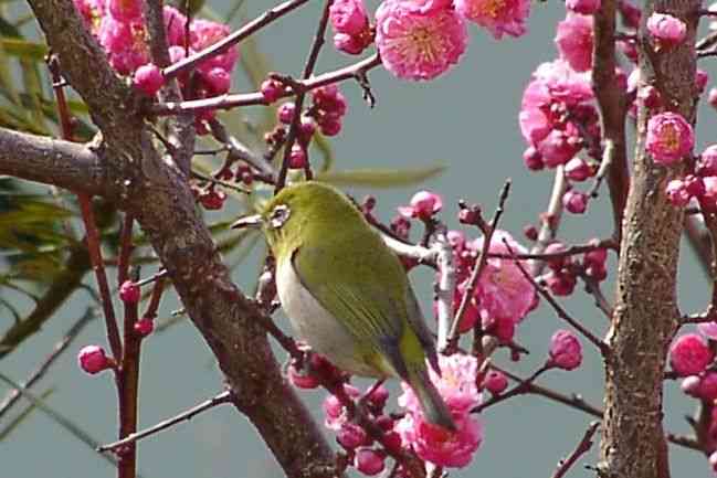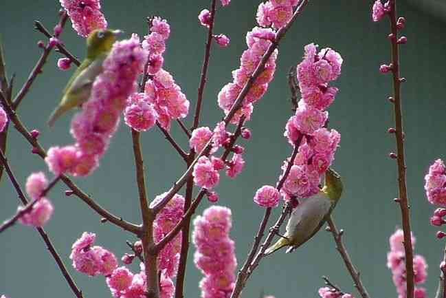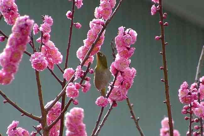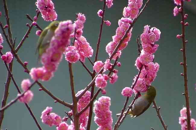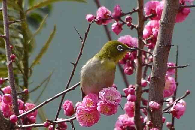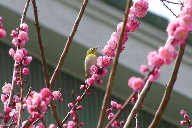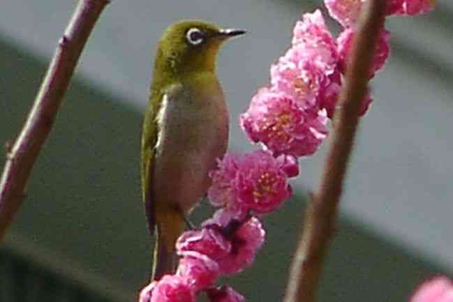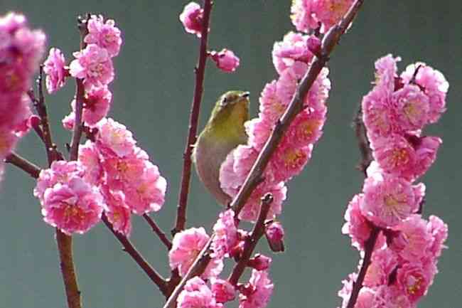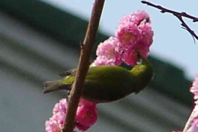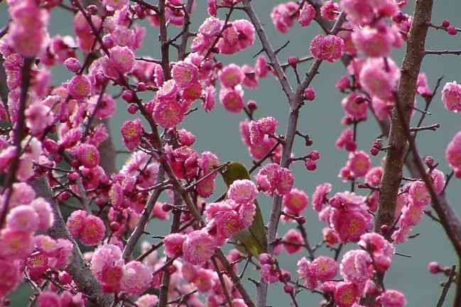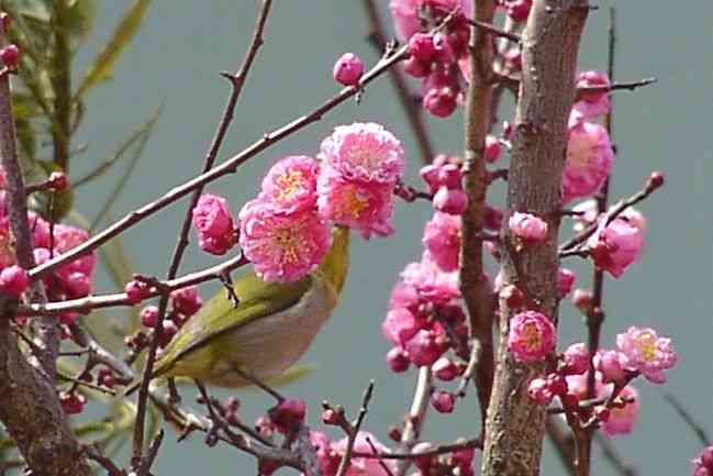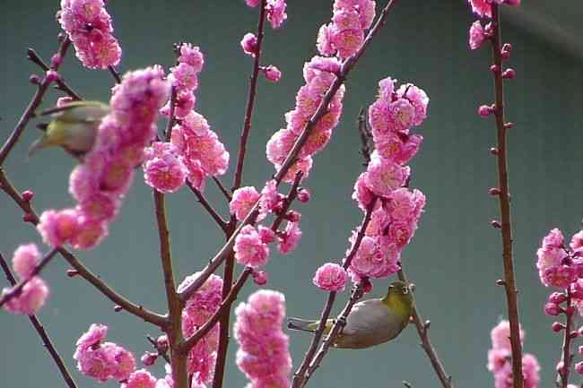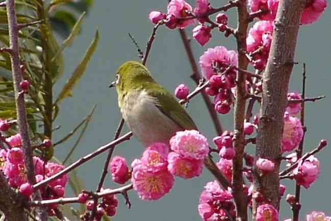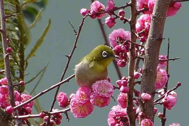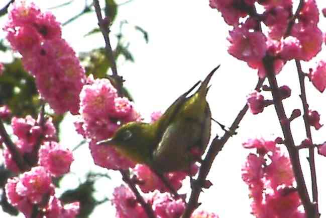 No.7 八重の紅梅 あれっ、メジロはどこ? |