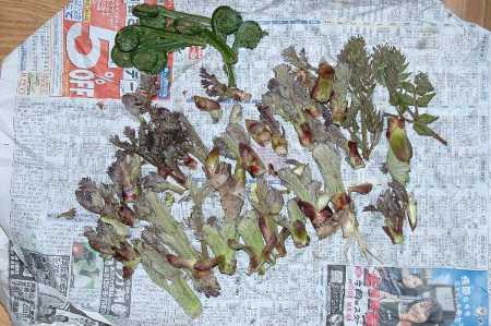 おっと、 タラの樹を見つける、 芽が出ていると 初収穫