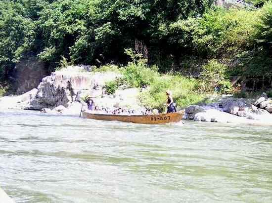 ![]() 鵞流峡を抜け、時又港へ向かう船 この船の漕船はとっても大変だと思う |