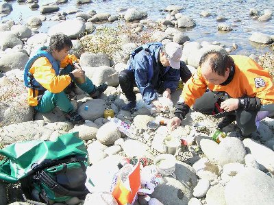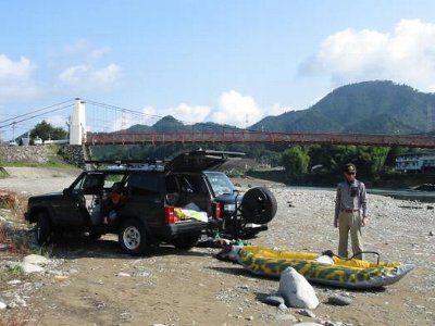 関の川原で、待ち合わせ、 回送用に車1台を残し、上流の美濃橋へと、車で移動。